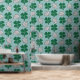 Green Pink Clover Shamrock Hand Drawn Pattern Wallpaper. Beautiful and simple clovers on green and pink colours on a green background. The design is a digital drawing.