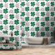 Green Pink Clover Shamrock Hand Drawn Pattern Wallpaper. Beautiful and simple 4 leaves clovers on green and pink colours on a white background. The design is a digital drawing.