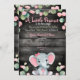 Green Pink Elephant Baby Shower invitation Rustic