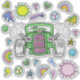 Green pink Hot Rod Car and Unicorn sticker sheet
