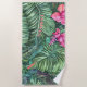Green Pink Leaf Pattern Personalised Summer Beach Towel