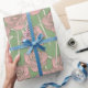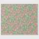 Green Pink Rose Retro Y2K 70s Flower Pattern Wrapping Paper