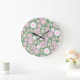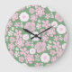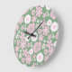 Green Pink White Retro Y2K 70s Flower Pattern Large Clock