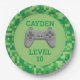 Green Pixelated level up Video Game Birthday Party Paper Plate