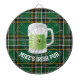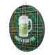 Perfect for the man cave and St. Patrick's Day parties, this custom dart board is done in the traditional green, black, yellow, and white Irish National tartan plaid pattern. Graphics of a mug of green beer, decorates the centre, of the dart board. Personalise the white bold text to read what you want.