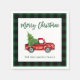 Green Plaid Brush Script Christmas Vintage Truck Napkin
