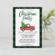 Brush Script Watercolor Vintage Red Truck with Christmas Tree - Green Plaid Christmas Party Invitation