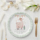 Green Plaid Cactus Boho Llama Any Age Birthday Paper Plate