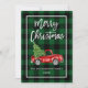 Green Plaid Christmas Vintage Truck Brush Script Holiday Card