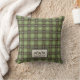 Plump up your porch or indoor furniture in your rustic home, cottage or vacation cabin with this custom green, and grey plaid pattern pillow accented with hints of light blue and a deer silhouette. Edit the monogram and text captioning as desired and look for other coordinating items in this design collection at Camp_and_Cottage on Zazzle.com.