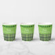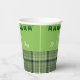 Green Plaid Flags Happy St Patrick`s Day Paper Cups. Happy St. Patricks`s Day text with green shamrocks on bunting flags and green plaid. You can change the text.