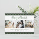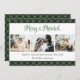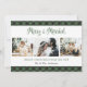 Elegant green plaid photo merry and married Christmas cards featuring a snowy black and green buffalo plaid background with 3 photos in the middle and a beautiful hand-lettered script title above. Easily personalise this green plaid Christmas card with your images, text, and your family name.