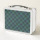 Carry your lunch in a fashionable green plaid metal lunchbox.