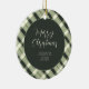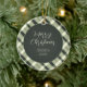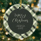 Green Plaid Pattern Modern Script Merry Christmas Ceramic Ornament