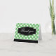Elegant, stylish, and fancy Thank You cards designed with white polka dots over green, "thank you" in white script over a black frame illustration, and the inside is custom printed with your own text.