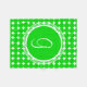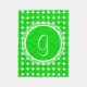 Green dots in close quarters create a secondary pattern of white stars. A large green circle is surrounded by white lines, while a single white initial graces the centre.