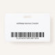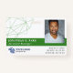 Horizontal employee ID badge personalised with logo, photo, name and title, and badge number and expiration date. Add name and title in white on green.