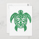 A bright green Polynesian sea turtle ("honu" in Hawaiian). The tropical turtle is designed in a tribal tattoo style.