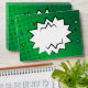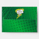 Pun pop art envelope in bright green with a white burst for the address. Speech bubble on the back flap for the return address.