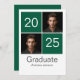 Make your graduate's big moment unforgettable with this modern and eye-catching graduation invitation. Featuring a bold four-square layout, this design showcases two customisable green squares—one with "20" and the other with "25" (or your chosen class year)—paired perfectly with two spaces for personal photos of the graduate. It’s a fresh, fun way to honour their hard-earned achievement and share the excitement with friends and family.