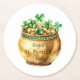 Green Pot of Gold Shamrocks St. Patrick's Day Round Paper Coaster