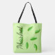 Designer unisex large cloth market bag, great for produce. Personalise the text for its use. The light green fabric background can be changed to your favourite colour.