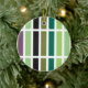 Geometric linear, rectangle, striped pattern of black, purple and green hues.