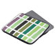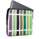 Geometric linear, rectangle, striped pattern of black, purple and green hues.