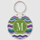 Green & Purple Chevron Pattern with Monogram Key Ring
