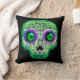 Green & Purple Glowing Sugar Skull Black Halloween Cushion