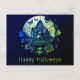 Adding a playful touch to the eerie design, the words "Happy Halloween" are showcased in a fun Halloween drip font in vibrant green, setting the stage for a festive celebration. Whether you're sending it to friends, family, or even as a Halloween party invitation, this postcard is the ultimate way to share the spirit of the season.