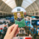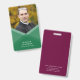 A modern photo badge featuring a green layered geometric design on the front where you can also add your photo and a purple colour back side. Perfect as an office badge for your staff and also a great way to introduce yourself at meetings or events.