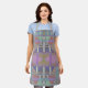 Colourful geometric shapes pattern, custom made artwork in prominent shades of green, purple, pink, blue and with additional shades of brown, grey, yellow, red, orange, gold. Elegant trendy digital art design.