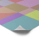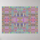 Colourful geometric shapes pattern, custom made artwork in prominent shades of green, purple, pink, blue and with additional shades of brown, grey, yellow, red, orange, gold. Elegant trendy digital art design.