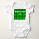 This baby bodysuit has a geometric design of triangles that form squares that look like a bird's eye view of pyramids. The text is customizable.