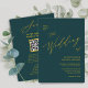 Green Modern Gold Script QR Code All In One Minimalist Wedding Invitation Card. Celebrate your special day with this elegant and beautiful wedding invitation card to beautify your special occasion. All the texts are pre-arranged for you to personalise easily and quickly with your own details. If you need further customisation or matching items, please email alldaybreakfastzazzle@gmail.com – we would love to help.