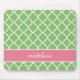 Preppy green and pink quatrefoil mouse pad - personalise with your name