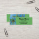 cute painting of a green rabbit on blue background makes this fun bunny business card.
