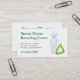 The iconic green recycling symbol on a clean white background. Nice business card for a recycling centre or scrap yard business. All text is fully customisable on front and back of the business card.