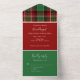 This all in one wedding invitation card is special. You get your invitation card and the RSVP card all in one. It is a customisable card with your Intro, names, occasion, date, adress, rsvp and other backgrounds to your preferations. It shows a harmonious blend of green, red, black, white and it has fitting red + green tones and white typography. It is a green, red and black scottish pattern. The minimal burgundy and green background is for your customisation and on the backside for your adress. Hobinishop. Hobinishop