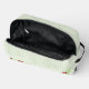 A pretty green and red cherry pattern gingham toiletry bag with a simple stripe design. This cute, trendy, and elegant cosmetic case is perfect for her, your daughter, or as a modern back-to-school essential. A feminine, girly pastel bag for spring and summer.