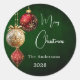 Green red gold baubles classic Christmas Round Sticker