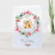 Delight friends and family with this folded Christmas card featuring a snowy blue background and a hand-painted wreath of poinsettias, holly, and pine surrounding a golden bell. The inside contains an original heartfelt holiday message that you can also customise. A timeless choice for sending warm wishes that feel both personal and festive.