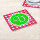Green & Red Polka Dot Monogram Square Paper Coaster