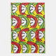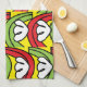 Green Red Vegetable Flower Pattern kitchen towel. Green red vegetable stem with white flower whimsical pattern on yellow background design for gardening lover, plant lover.
