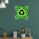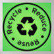 Reduce, Reuse, Recycle poster with black text and recycling symbol on a faded green background.