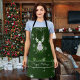 Bring timeless holiday style to your kitchen with this Green Reindeer Christmas Apron. Featuring a graceful white reindeer framed by a festive Christmas wreath, lush holiday pine garland, and bright holly berries, the design is accented with delicate white snowflakes for a classic winter theme. A cheerful Merry Christmas greeting in elegant script completes the look, making it a perfect choice for cooking, baking, or entertaining. Ideal as thoughtful holiday kitchen gifts or as a charming seasonal accent for your own home.