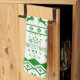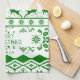 Green Reindeer Knitted Pattern White Background Tea Towel