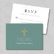 Green Religious Cross Boy First Communion RSVP Card
