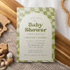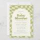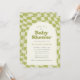 Green Retro Groovy 70s Chequerboard Baby Shower Invitation